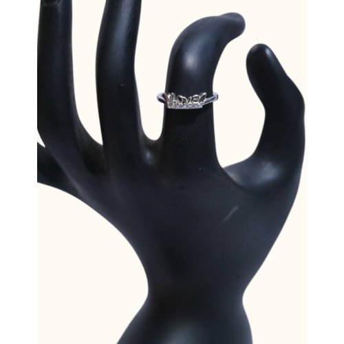 Say it with sparkle! This elegant silver ring features the word “Love” in a delicate script, adorned with tiny shimmering stones that catch the light with every movement. Whether it's a gift or a personal keepsake, this ring is the perfect symbol of affection and charm.