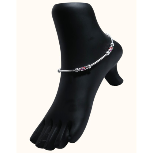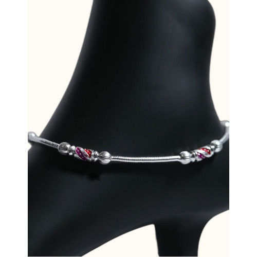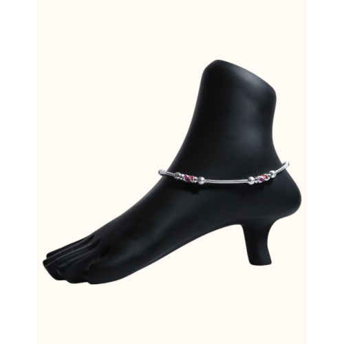 Adorn your ankle with the subtle elegance of this 92.5 sterling silver anklet. Featuring a sleek snake chain, this delicate piece is embellished with sections of intricately textured silver beads and vibrant enamel accents in a rich ruby red hue. The enamel adds a touch of color and visual interest to the smooth silver chain, while the textured beads provide a tactile contrast. This anklet offers a refined and understated style, perfect for adding a delicate accent to your everyday wear.