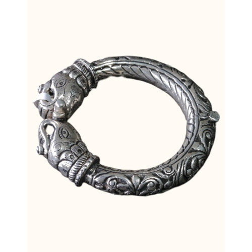 | Design: | Open-end bangle with detailed elephant head motifs and intricate body patterns |
